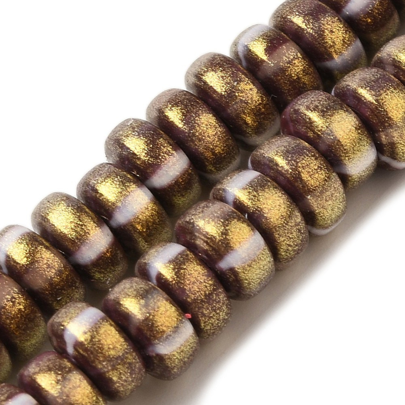 Streng van ca. 110 fimokralen in rondelvorm met goudkleurige glitter.
