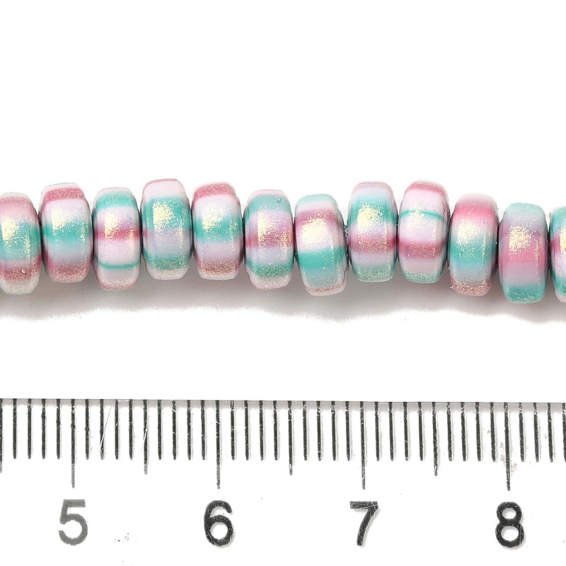 Streng fimokralen rondel met glitter, wit met groen/roze