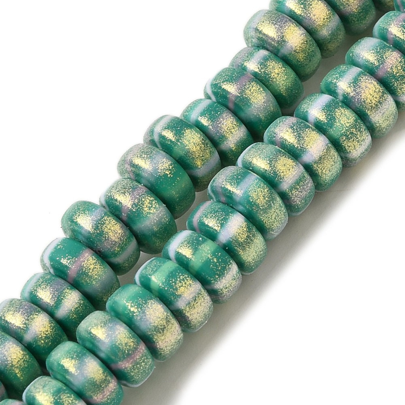 Streng van ca. 110 fimokralen in rondelvorm met goudkleurige glitter.