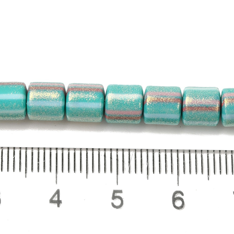 Streng van ca. 60 fimokralen in kolomvorm met goudkleurige glitter.
