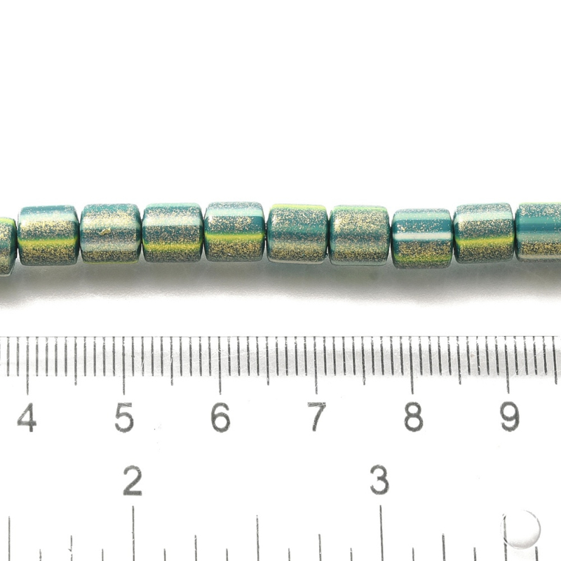 Streng van ca. 60 fimokralen in kolomvorm met goudkleurige glitter.